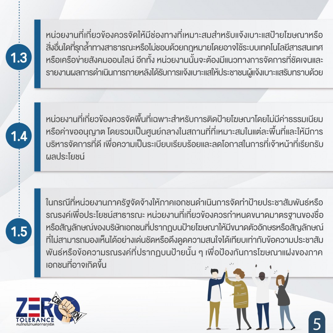 (2) หน่วยงานที่เกี่ยวข้องควรจัดให้มีช่องทางที่เหมาะสมสำหรับแจ้งเบาะแสป้ายโฆษณาหรือสิ่งอื่นใดที่รุกล้ำทางสาธารณะหรือไม่ชอบด้วยกฎหมาย รวมทั้งมีแนวทางการจัดการที่ชัดเจนและรายงานผลการดำเนินการภายหลัง