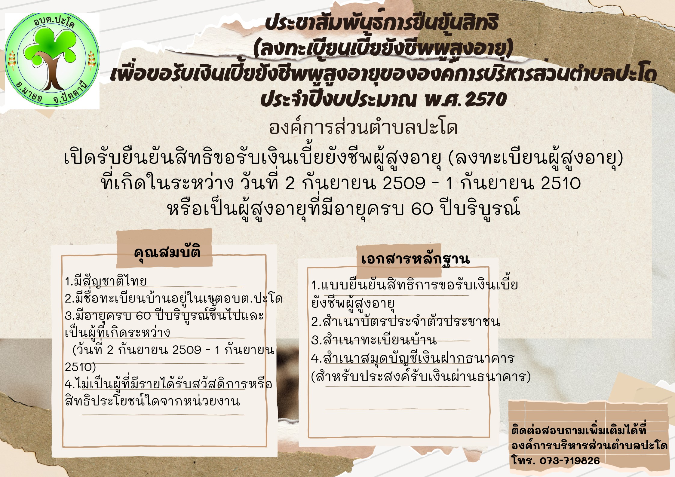 ประาสัมพันธ์การรับยืนยันสิทธิผู้สูงอายุ ประจำปีงบประมาณ 2570