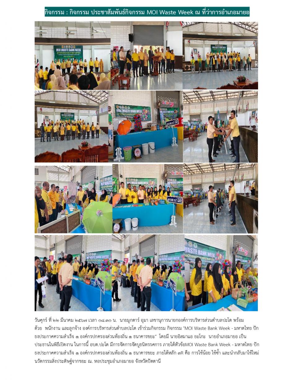 กิจกรรม ประชาสัมพันธ์กิจกรรม MOI Waste Week ณ ที่ว่าการอำเภอมายอ [22 มีนาคม 2567]
